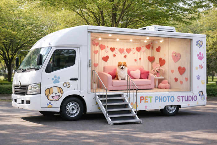 店内に撮影ブースが設置されるパターンと、フォトスタジオ車両が手配されるパターンがあるとのこと。